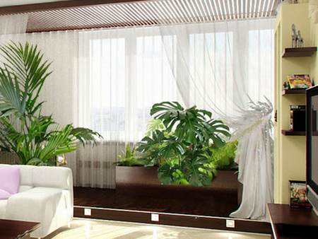 В любом доме или квартире гостиная - самая большая и нарядная комната, в которой собирается вся семья для отдыха и общения. Часто она служит столовой, здесь же принимают гостей. Поэтому гостиная должна быть не только красивой, но и удобной для всех членов семьи и их друзей. Одно из главных правил дизайнеров интерьера - лучше меньше да лучше. Не стоит расставлять много невзрачных мелких цветов по всей комнате. Для начала определите места, где можно разместить 1-2 крупных эффектных растения в напольных кашпо высотой от 1 до 2-2,5 м, в зависимости от высоты потолков. Обычно такое место бывает в углу комнаты недалеко от окна или между предметами мебели. Если места мало, стоит выбрать растения с компактной узкой кроной, не мешающей передвижению. Это может быть филодендрон или сциндапсус на опоре, драцена Маргината (Dracaena Marginata) и т.п.