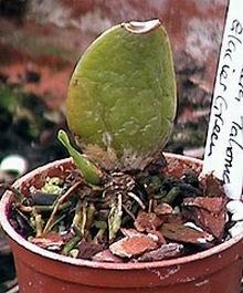 Видны первые признаки роста задних бульб, первая стадия заняла 4 месяца с момента посадки бульб.