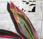 Коричневые кончики или края листьев. Если они сухие, то наиболее вероятная причина - слишком сухой воздух, так же это может быть результат физических повреждений, например, при соприкосновении со стеклом. Если края листьев желтые или коричневые, то это может быть из-за переувлажнения почвы или недостатка полива; слишком слабого или слишком сильного освещения; слишком высокой или слишком низкой температурой воздуха; избытка минеральных веществ, сухого воздуха или холодного сквозняка. А также это может быть при отравлении растения хлором или калийном голодании. Определить истинную причину помогут другие симптомы.