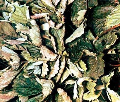 Мучнистая роса на землянике садовой. Грибок, вызывающий болезнь (Erysiphales), выступает в специфической форме, инфицирующей только землянику садовую.