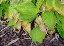 Многие из желтоокаймленных сортов, происходящих из семейства Sieboldiana, подвержены ржавчине. Это обезвоживание клеток листа в течение слишком долгого и сухого периода. Можно пересадить растение в более тенистое место или обильнее поливать, что, к сожалению, не решит проблему полностью. Это уже особенность сортов этой группы.